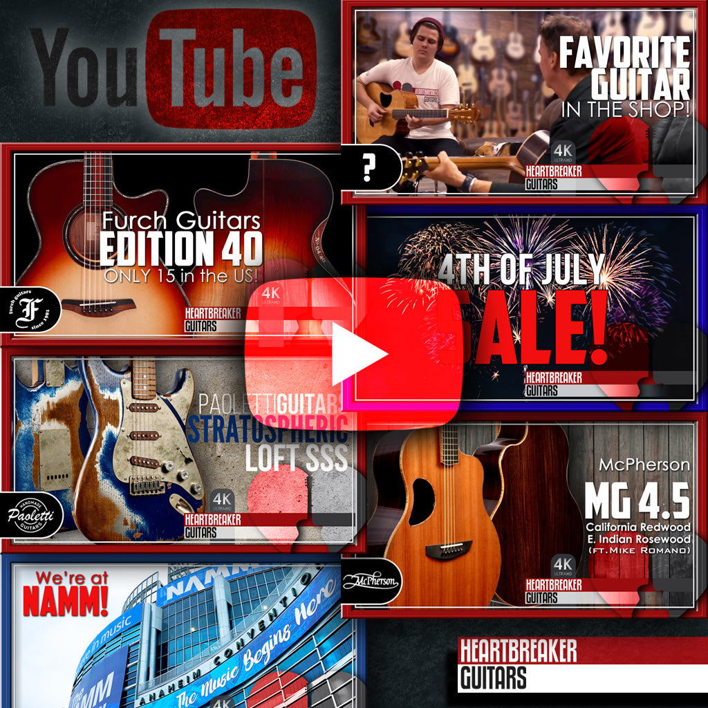 The Heartbreaker Guitars YouTube channel is updated daily with demos from the Heartbreaker Showroom. As new guitars arrive from our wide selection of vendors, they're quickly set up and put behind the camera so you know exactly what your guitar will look and sound like! Have a special request? We'd love to hear it!
