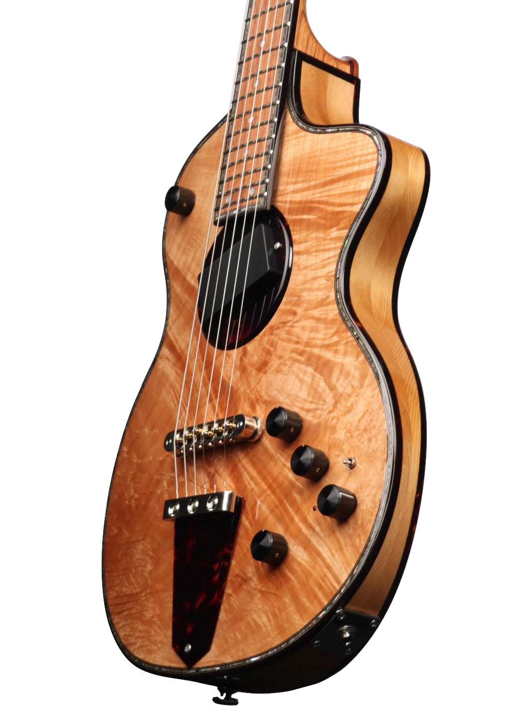 The Model 1 Legacy 21 Featherweight is a remarkably stunning tribute to the genius of Mr. Rick Turner, with only 21 guitars to be produced. This special edition marks the final guitars that Rick took part in personally designing before his passing, ensuring each instrument carries the unparalleled legacy of his craftsmanship. The guitar features a Western Red Cedar core personally cut by Rick, sandwiched between a stunning Quilted Maple top and back, all finished in a natural gloss for a sleek, timeless look. The Tortoise binding and Abalone purfling beautifully highlight the Model 1’s unique body, while the 5-ply Spanish Cedar / Purpleheart neck with a Honduran Rosewood fingerboard offers exceptional traversability up and down the neck. Boasting a full electronics package, the Model 1 Legacy is equipped with a D-TAR Eclipse active preamp, parametric EQ, and piezo pickup, providing a versatile sonic range ideal for any performance. Its Gotoh 510 tuners ensure stable tuning, while the Bezard poxy tortoise pickup surround, battery cover, and truss rod cover add a refined finishing detail. This guitar is not just an instrument; it's a rare piece of history, imbued with the spirit of one of the guitar community’s most accomplished and hardworking luthiers.
